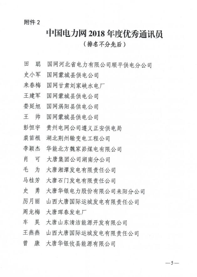 關(guān)于表彰“中國電力網(wǎng)2018年先進供稿單位、優(yōu)秀通訊員”的通知