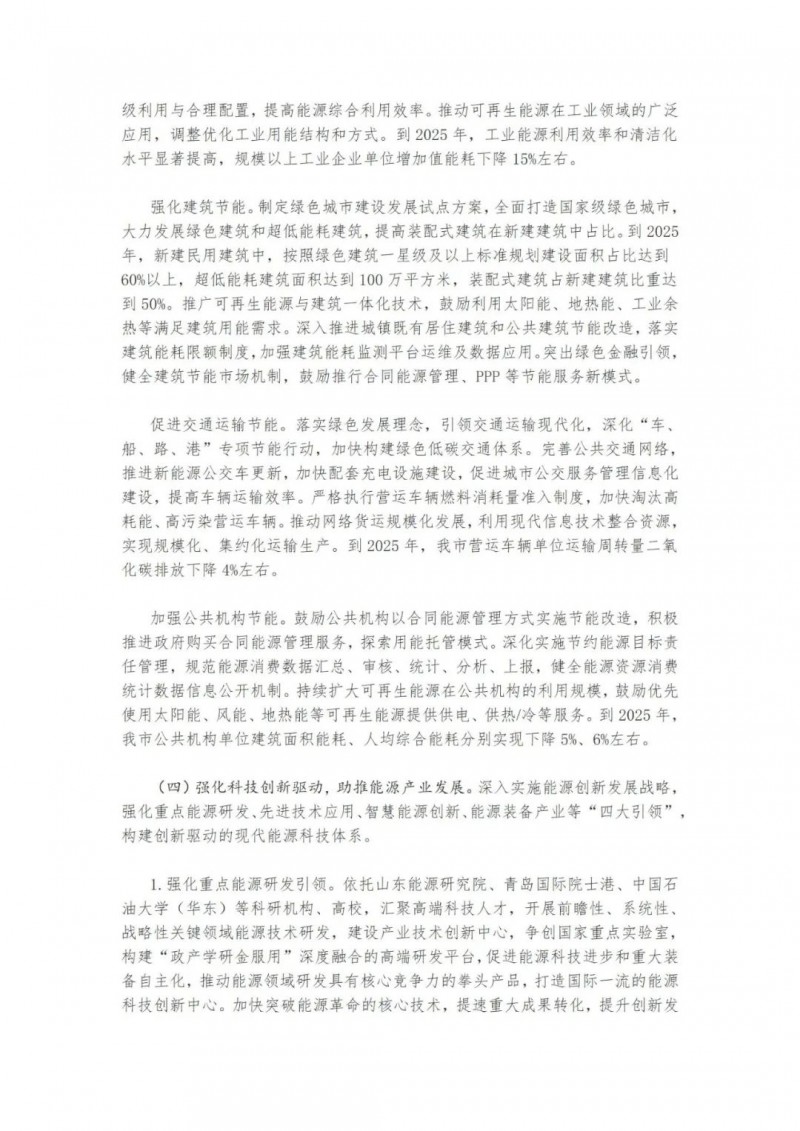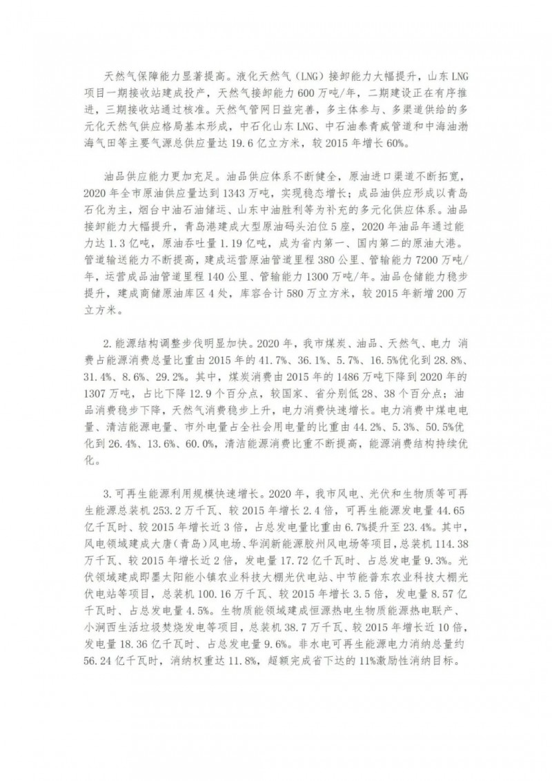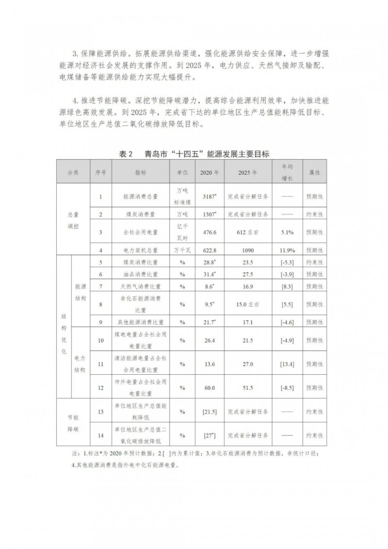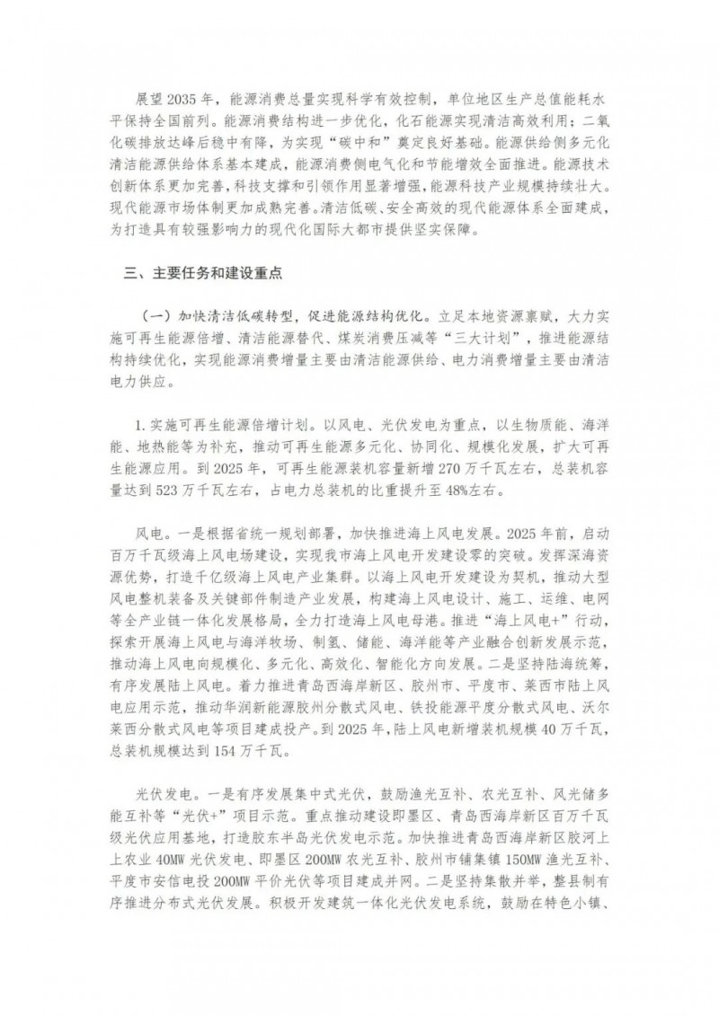 近日,山東青島市人民政府辦公廳印發(fā)了《關(guān)于印發(fā)青島市“十四五”能源發(fā)展規(guī)劃的通知》。提出了青島市“十四五”能源發(fā)展的主要任務(wù)和建設(shè)重點(diǎn)。實(shí)施可再生能源倍增計(jì)劃。以風(fēng)電、光伏發(fā)電為重點(diǎn),以生物質(zhì)能、海洋能、地?zé)崮艿葹檠a(bǔ)充。到2025年,可再生能源裝機(jī)容量新增270萬千瓦左右,總裝機(jī)容量達(dá)到523萬千瓦左右,占電力總裝機(jī)的比重提升至48%左右。