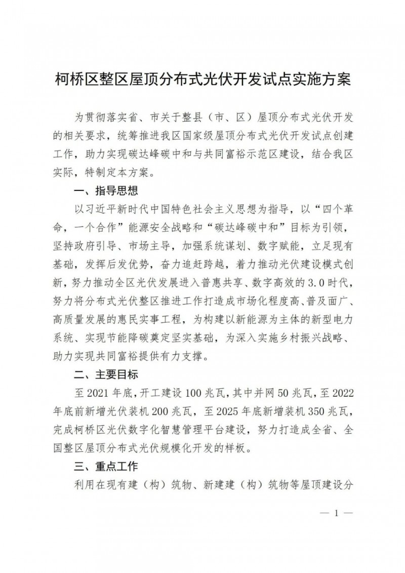 關(guān)于柯橋區(qū)整區(qū)屋頂分布式光伏開發(fā)試點(diǎn)實(shí)施方案的公示