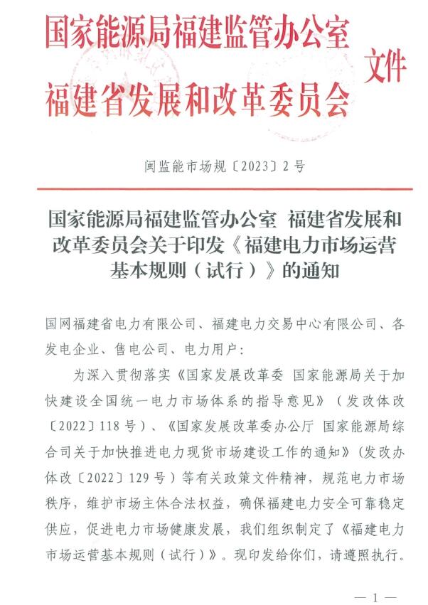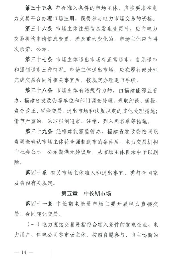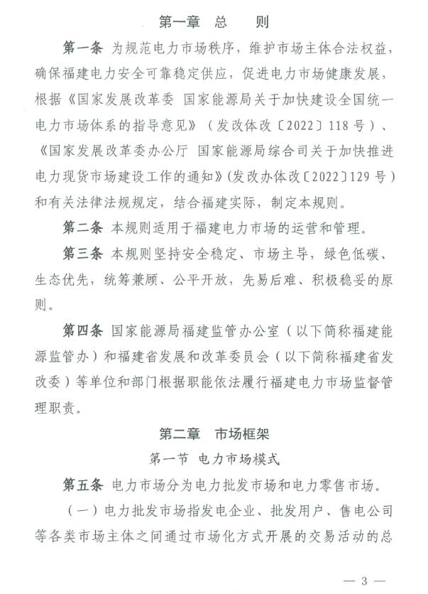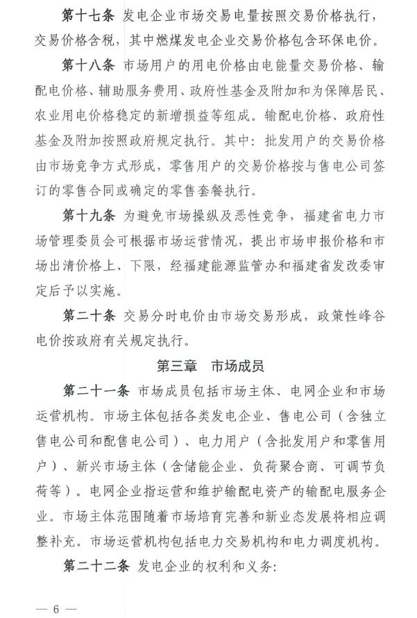 《福建電力市場運(yùn)營基本規(guī)則(試行)》原文如下:
