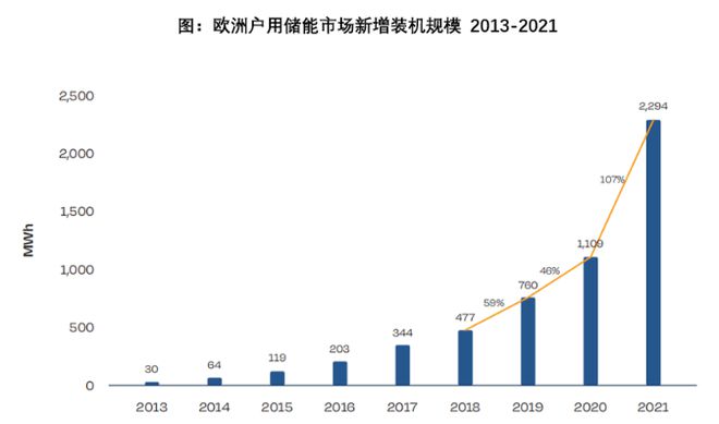 歐洲2022年家用電池儲能系統(tǒng)安裝數(shù)量已超過百萬組,電池規(guī)模超過9GWh