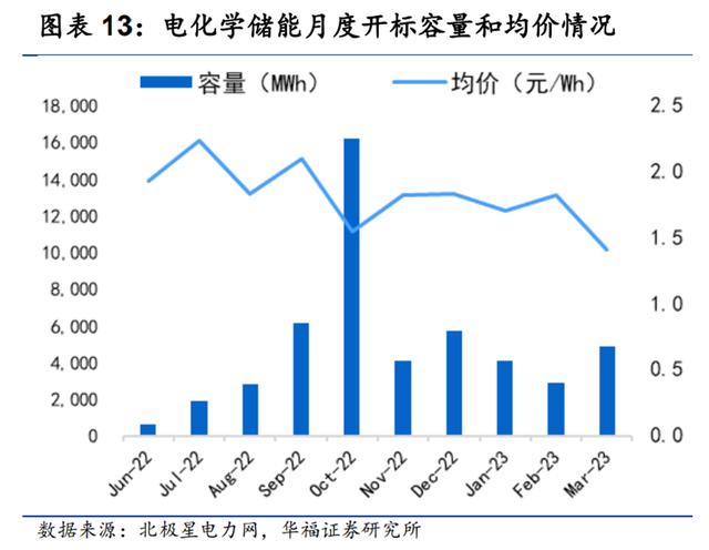 華福證券數(shù)據顯示,當月電化學儲能項目中標均價僅為1.41元/kWh,同比下降22.53%,其中儲能系統(tǒng)設備中標均價僅為1.23元/Wh。