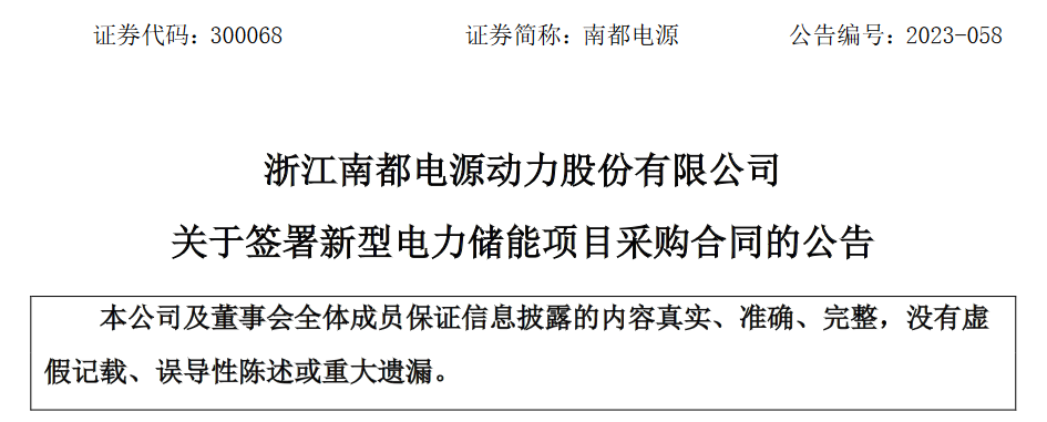 南都電源于4月27日發(fā)布公告稱,浙江南都電源動力股份有限公司控股子公司浙江南都能源科技有限公司于近日與中國電建集團(tuán)貴州工程有限公司簽署《儲能系統(tǒng)設(shè)備采購合同》,供貨內(nèi)容主要為儲能鋰電池系統(tǒng),合同金額為2.9億元。