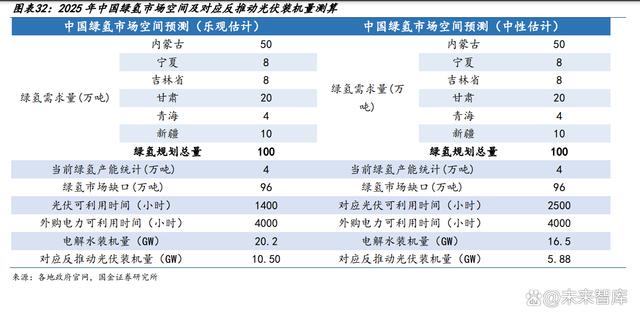歐盟提出可再生氫(綠氫)定義規(guī)則,三大條定義核心全部與可再生能源發(fā)電掛鉤, 制取氫氣電力中的 90%是可再生能源發(fā)電,這樣制取的氫才能稱為綠氫。因此,基于 光伏年發(fā)電小時數(shù)的限制,電解槽一年的運行時間與光伏設備運營時間高度相關。以 電解槽匹配光伏制氫為例測算,分樂觀情況下,電解槽年運行 1400 小時和中性情況 下,年運行2500小時,分別對應90萬噸綠氫規(guī)劃總量下,可裝電解槽37.8GW和21.2GW, 反推動光伏裝機量 47.3GW 和 26.5GW。預計在未來技術迭代和成本逐步下降的情況下, 2025 年后電解水設備及綠氫市場將持續(xù)加速,反推動可再生能源量也將高增。