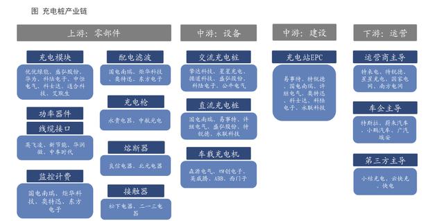 再來拆下充電樁的產業(yè)鏈,充電樁的產業(yè)鏈很簡單,上游是零部件、中游是設備加工制造,再到下游運營環(huán)節(jié)。