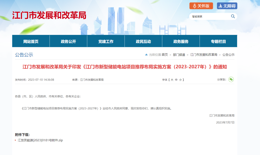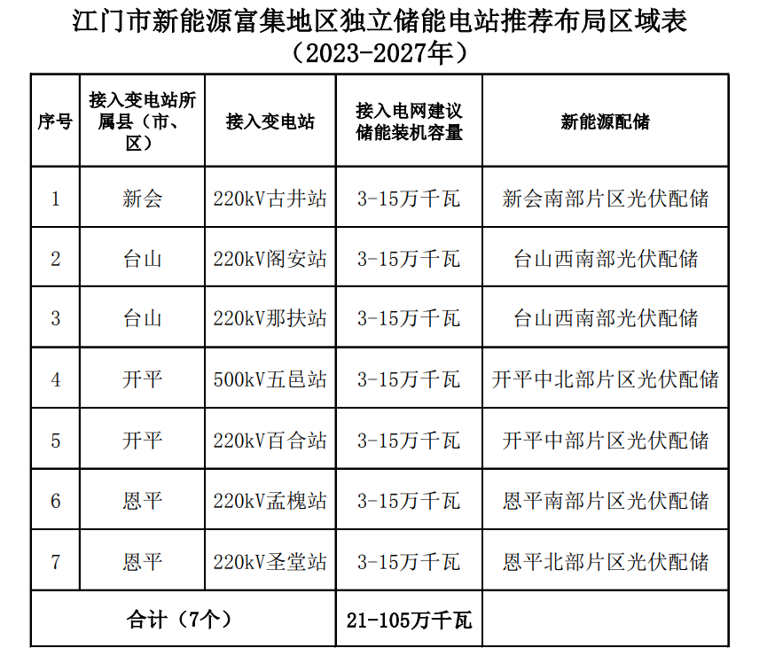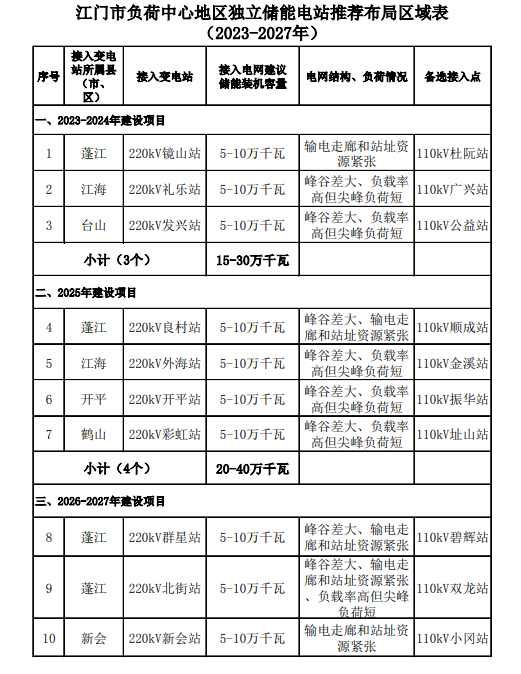 江門發(fā)展改革局印發(fā)《江門市新型儲能電站項(xiàng)目推薦布局實(shí)施方案(2023-2027 年)》(簡稱:《方案》)。