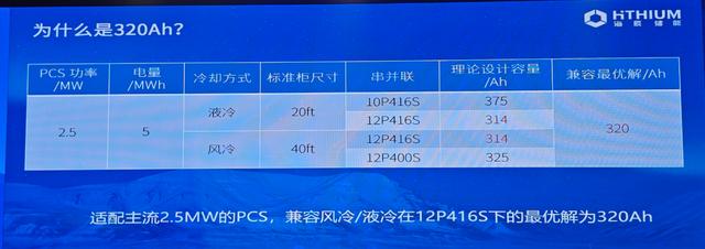 海辰儲(chǔ)能測(cè)算后,最合適的方案是一個(gè)12組、460串,折算下來(lái)就是314Ah就能達(dá)到這個(gè)實(shí)現(xiàn)?;诖耍m配2.5MW的逆變器最優(yōu)解的方式是把原來(lái)的280Ah容量升級(jí)為320Ah。