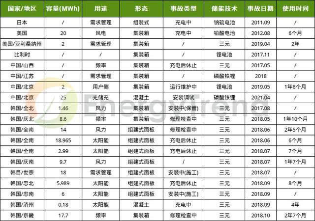 圖:部分儲(chǔ)能電站爆炸事故詳情