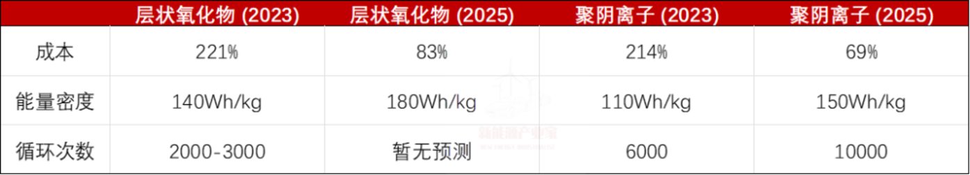可以看到,除了能量密度率略有差異,聚陰離子具備更誘人的性價比。