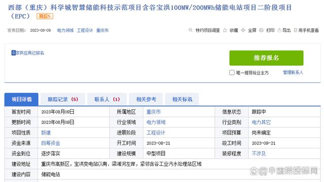 西部(重慶)科學(xué)城智慧儲(chǔ)能科技示范項(xiàng)目含谷寶洪100MW/200MWh儲(chǔ)能電站項(xiàng)目二階段項(xiàng)目(EPC),建設(shè)地點(diǎn)位于重慶市高新區(qū),寶洪變電站以南、梁灘河左岸,緊鄰含谷工業(yè)污水處理站區(qū)域,資金來(lái)源為企業(yè)自籌,資金已落實(shí),項(xiàng)目規(guī)劃裝機(jī)規(guī)模100MW/200MWh,工期:30天,計(jì)劃開(kāi)始日期:2023年08月21日。