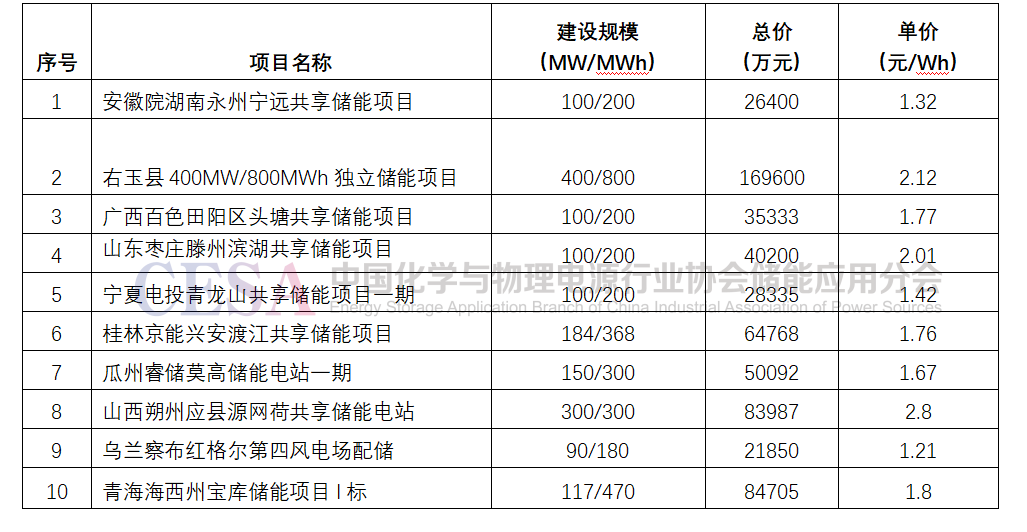 可以看出,不同的項目中標(biāo)價格差別巨大,由于儲能電站建設(shè)費用影響因素較多,不能簡單的用單位價格的對比來判別項目造價水平的高低。