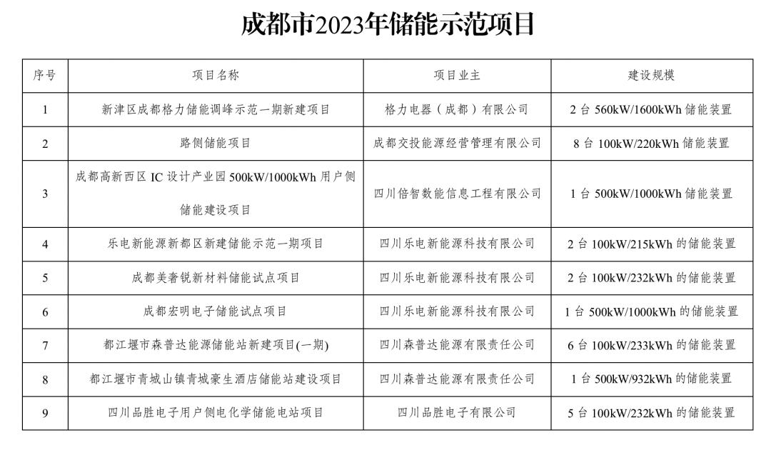 為加快推動成都市儲能產(chǎn)業(yè)發(fā)展,著力構(gòu)建清潔低碳安全高效的現(xiàn)代能源體系,前期成都市發(fā)改委印發(fā)了《關(guān)于申報2023年污染治理和節(jié)能減碳領(lǐng)域(儲能專項)市預算內(nèi)投資項目的通知》(成發(fā)改環(huán)資函〔2023〕92號),對年利用小時數(shù)不低于600小時的儲能示范設(shè)施給予每千瓦230元/年補助,補貼周期為連續(xù)3年,每年最高不超過100萬。經(jīng)企業(yè)自愿申報和專家評審,共有9個儲能項目被納入成都市2023年儲能示范項目,現(xiàn)予以公示。