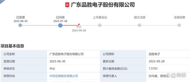 9月28日,深交所官網(wǎng)顯示,廣東品勝電子股份有限公司(以下簡稱“品勝電子”)因更新財(cái)務(wù)資料中止IPO。儲能早知道注意到,品勝電子于6月30日獲深交所受理,并首次披露招股書申報(bào)稿,于7月28日通過深交所下發(fā)第一次審核問詢函。