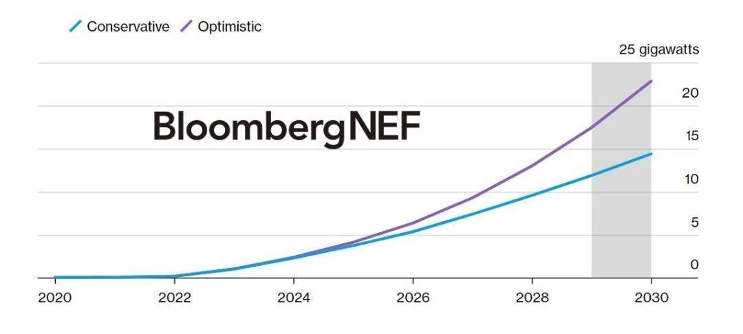 圖:中國液流電池裝機規(guī)模預(yù)測(彭博新能源財經(jīng))