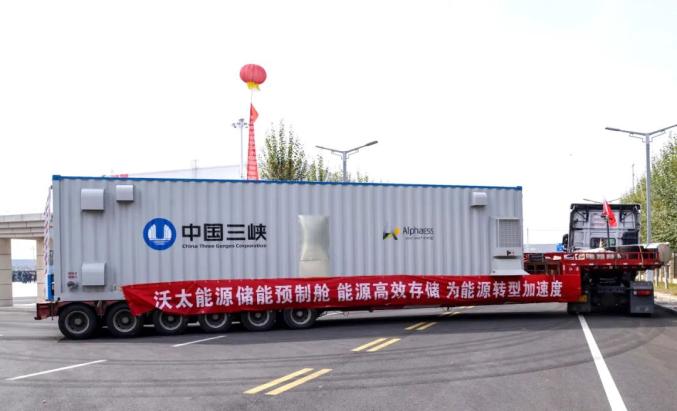 10月17日,在三峽現(xiàn)代能源創(chuàng)新示范園內(nèi),隨著2輛裝載儲能預(yù)制艙的裝備物流車緩緩駛出,標(biāo)志著沃太能源儲能系統(tǒng)首套預(yù)制艙正式下線。副市長方澤出席下線儀式。