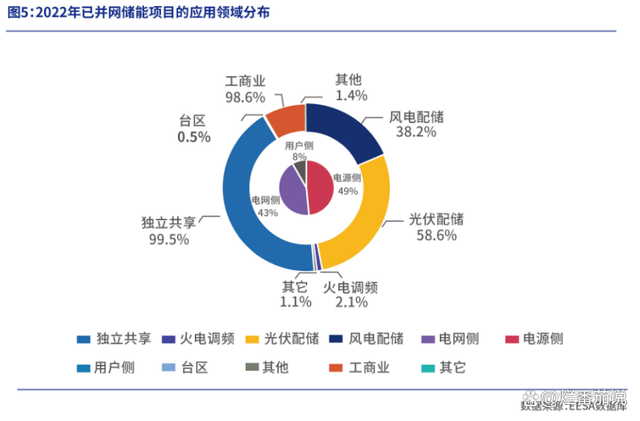以此來(lái)計(jì)算,風(fēng)光配儲(chǔ)項(xiàng)目占2022年已并網(wǎng)儲(chǔ)能項(xiàng)目的比例高達(dá)47.4%,規(guī)模比例排第一位。