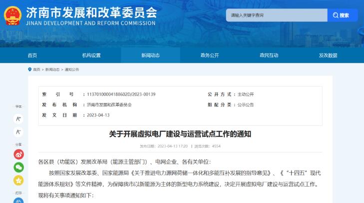 濟(jì)南開展虛擬電廠建設(shè)運(yùn)營試點(diǎn)工作 來源:濟(jì)南市發(fā)改委