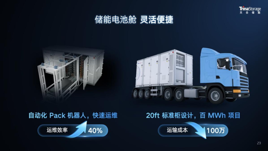 5MWh儲能系統(tǒng)在降本增效上具有突出優(yōu)勢,如更低的度電成本、更優(yōu)的組合方案,標準尺寸下更高的能量密度。同時,也面臨著一些挑戰(zhàn),如電芯一致性與電池簇間能量均衡管理,更大Pack設(shè)計下對于結(jié)構(gòu)、散熱、安全設(shè)計的挑戰(zhàn)以及約40噸重量運輸?shù)碾y題。天合儲能著眼當前市場需求,創(chuàng)新提出天合方案。