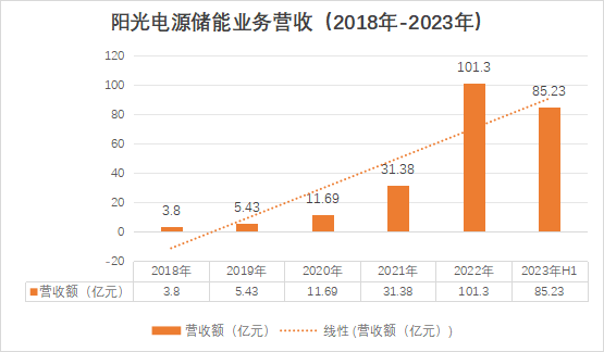 除了出貨量之外,業(yè)績(jī),也是一面鏡子,它是公司過(guò)往戰(zhàn)略的倒影。儲(chǔ)能營(yíng)收的飛速增長(zhǎng),無(wú)疑也印證了陽(yáng)光電源儲(chǔ)能布局和戰(zhàn)略定位的成功。2023年4月25日,陽(yáng)光電源披露2022年年度報(bào)告,其儲(chǔ)能系統(tǒng)營(yíng)收實(shí)現(xiàn)101.26億,首次破百億。2023年半年報(bào)顯示,僅半年其儲(chǔ)能營(yíng)收已經(jīng)高達(dá)85.23億。