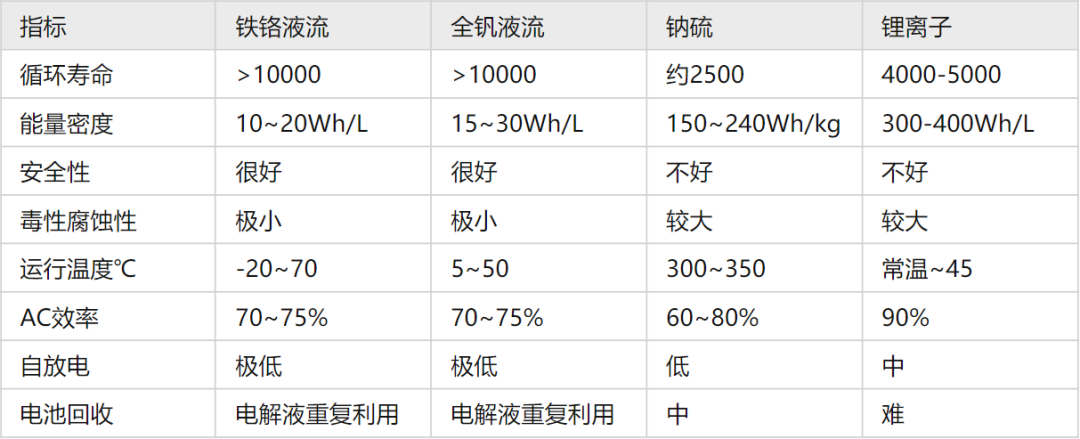 圖說(shuō):液流電池(鐵鉻、全釩)與其他電化學(xué)電池技術(shù)對(duì)比 來(lái)源:知乎