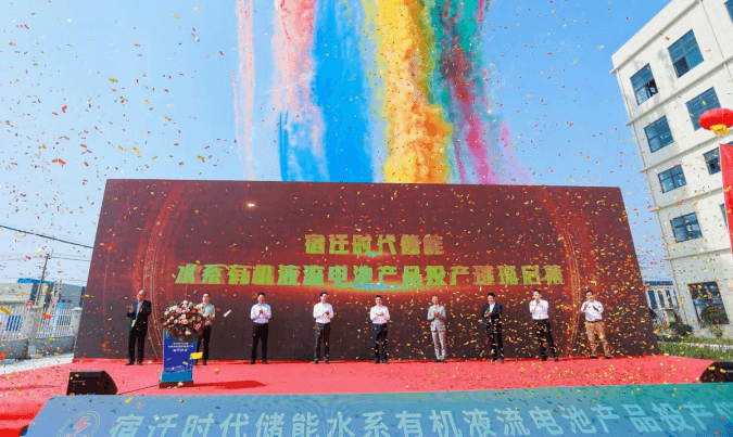 圖說(shuō):水系有機(jī)液流電池投產(chǎn)啟幕 來(lái)源:宿遷時(shí)代儲(chǔ)能