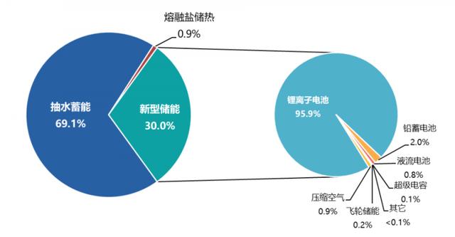 新型儲能是指除抽水蓄能以外的新型儲能技術,包括鋰離子電池、液流電池、壓縮空氣、飛輪儲能、儲熱蓄冷、氫儲能等。相較于傳統(tǒng)抽水蓄能,新型儲能具有響應速度快、建設周期短、調節(jié)性能高、選址布局靈活等優(yōu)勢。既可以發(fā)揮傳統(tǒng)儲能的“蓄水池”作用,在新能源發(fā)電量多的時候將多余電量儲存;又可以發(fā)揮“充電寶”的效用,在發(fā)電量少的時候,向電網(wǎng)送電,促使整體電力系統(tǒng)安全穩(wěn)定運行。
