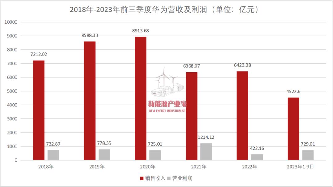 在美國制裁的陰影下,過去數(shù)年,華為的業(yè)務(wù)營收一直處在下滑態(tài)勢。2022年,華為銷售收入已經(jīng)比 2019 年少了 2000 多億元,利潤更在過去五年里減少超過四成。直到今年,才得以扭轉(zhuǎn)。