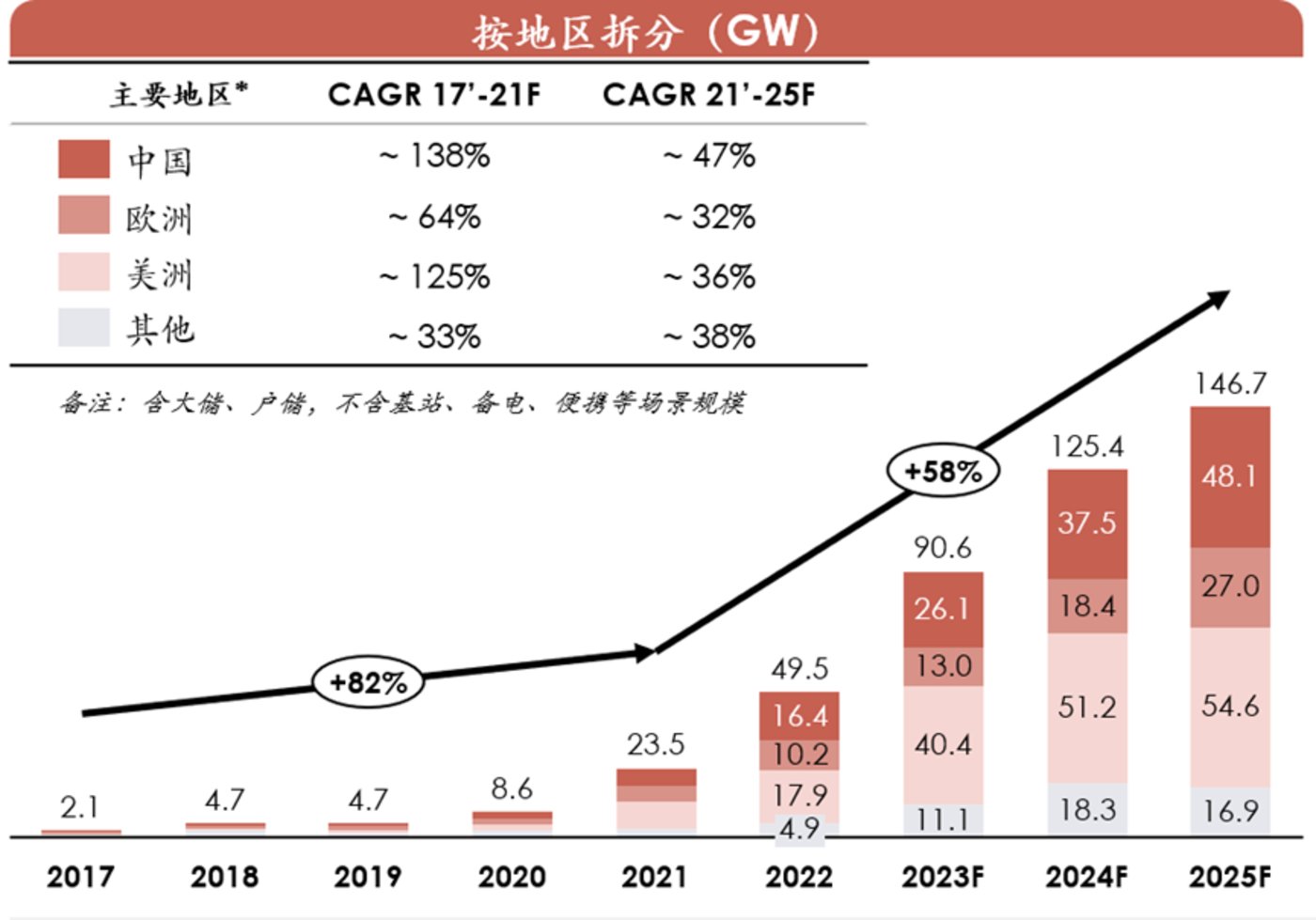 美國(guó),拜登總統(tǒng)激動(dòng)地雙臂高振,IRA法案頒布,對(duì)新能源大力補(bǔ)貼支持。光伏裝機(jī)量預(yù)期增加,而美國(guó)電網(wǎng)跨區(qū)傳送難度大,對(duì)儲(chǔ)能的需求很強(qiáng)烈。