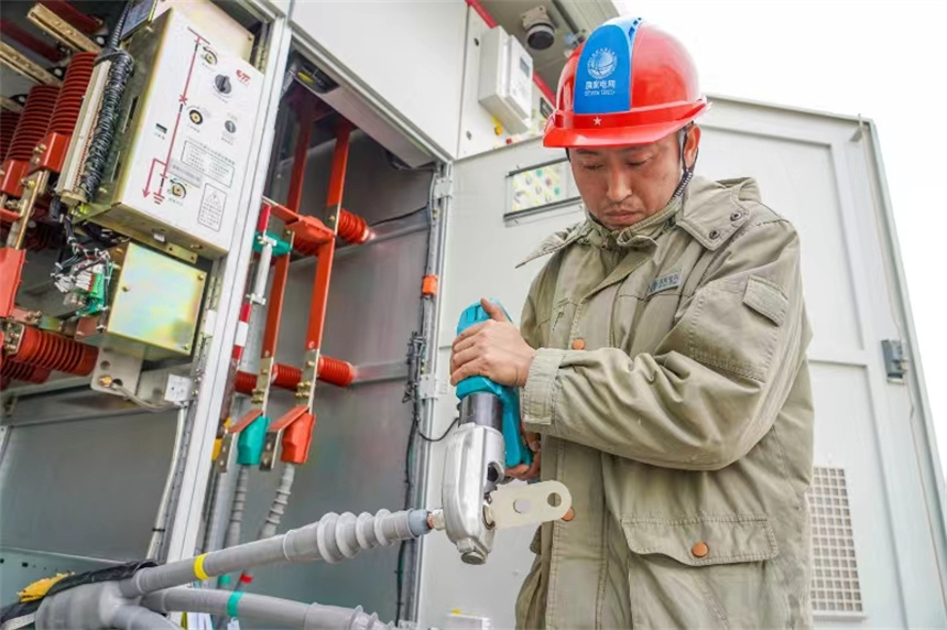 12月10日,電力人員正在制作10千伏電纜頭,確保荊門新港儲能電站可靠并網(wǎng)。李翊嘉攝