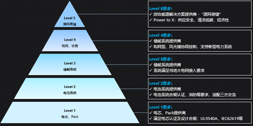 第一層是電芯和PACK提供商,主要聚焦產(chǎn)品性能提升和認(rèn)證的準(zhǔn)入,通過海外市場認(rèn)證,就可以供應(yīng)給系統(tǒng)集成商;第二層是電池系統(tǒng)提供商,聚焦交流系統(tǒng)的適配和產(chǎn)品標(biāo)準(zhǔn)化,在通過認(rèn)證之外,還要做好安全和消防等方面的設(shè)計(jì),主要面向還是系統(tǒng)集成商;第三層次是儲能系統(tǒng)供應(yīng)商,需要在電網(wǎng)準(zhǔn)入、后期運(yùn)維兩個方面滿要求。