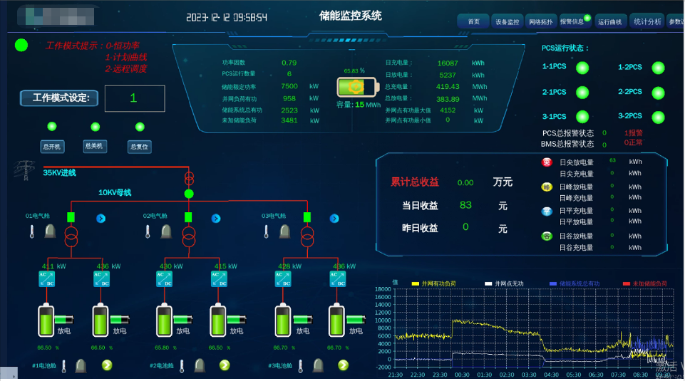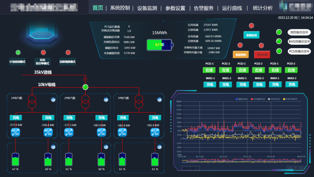 項(xiàng)目應(yīng)用中,禾望能量管理系統(tǒng)為工商業(yè)儲(chǔ)能提供更智能、更安全、更高效的能量管理。一方面,通過(guò)連接本地監(jiān)控和物聯(lián)網(wǎng)云平臺(tái),實(shí)時(shí)監(jiān)控能源設(shè)備的運(yùn)行狀態(tài)、實(shí)現(xiàn)遠(yuǎn)程數(shù)據(jù)監(jiān)視和控制。另一方面,利用谷峰價(jià)差,依托廠區(qū)/園區(qū)負(fù)荷,在不觸發(fā)逆流和超出最大需量的前提情況下,進(jìn)行削峰填谷,獲取尖峰平谷的電價(jià)差收益。