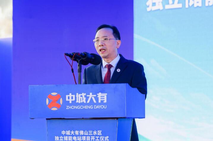 儀式開始,佛山市三水區(qū)白坭鎮(zhèn)黨委副書記、鎮(zhèn)長盧山首先致辭對項目表示祝賀,并指出該項目是三水區(qū)委十四屆六次全會暨區(qū)委經(jīng)濟工作會議后的首個動工項目,也是全區(qū)首個、全市第二個獨立儲能電站示范項目,彰顯了只爭朝夕的“白坭速度”,體現(xiàn)了中城大有“大干快上”的高效作風(fēng)。他強調(diào),項目填補了園區(qū)儲能實際應(yīng)用場景的空白,樹立了園區(qū)新型儲能新高地建設(shè)的品牌標(biāo)桿,帶動了園區(qū)一系列新型儲能重點產(chǎn)業(yè)的快速發(fā)展。