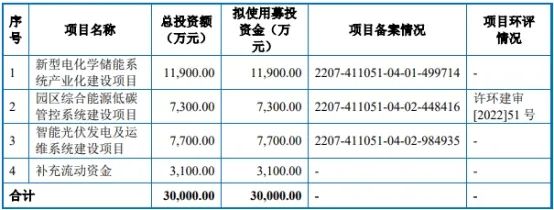 許昌智能成立于2009年,脫胎與許繼集團(tuán),目前主營(yíng)業(yè)務(wù)為智能配用電產(chǎn)品、新能源產(chǎn)品和系統(tǒng)的研發(fā)、設(shè)計(jì)、組裝、銷售和服務(wù),以及電力工程總承包業(yè)務(wù)。 根據(jù)許昌智能2024年1月15日披露的招股書(shū)顯示,公司擬募集資金30,000.00萬(wàn)元,計(jì)劃用于新型電化學(xué)儲(chǔ)能系統(tǒng)產(chǎn)業(yè)化建設(shè)項(xiàng)目、園區(qū)綜合能源低碳管控系統(tǒng)建設(shè)項(xiàng)目、智能光伏發(fā)電及運(yùn)維系統(tǒng)建設(shè)項(xiàng)目、補(bǔ)充流動(dòng)資金。