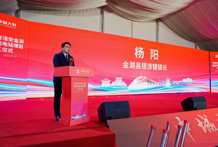 儀式開(kāi)始,金湖縣銀涂鎮(zhèn)黨委副書(shū)記、鎮(zhèn)長(zhǎng)楊陽(yáng)首先致辭對(duì)項(xiàng)目表示祝賀,并指出該項(xiàng)目是銀涂鎮(zhèn)貫徹落實(shí)縣委縣政府縣域經(jīng)濟(jì)突破決策部署,是深入開(kāi)展重特大項(xiàng)目攻堅(jiān)的重要階段性成果。他強(qiáng)調(diào),中城大有項(xiàng)目的開(kāi)工,吹響了2024年“雙招雙引”的號(hào)角,擂響了項(xiàng)目建設(shè)的戰(zhàn)鼓。項(xiàng)目開(kāi)工只是開(kāi)始,加快推進(jìn)、建成投產(chǎn)才是關(guān)鍵。銀涂將以開(kāi)工為新的起點(diǎn),繼續(xù)把項(xiàng)目建設(shè)作為各項(xiàng)工作的頭版頭條,全力以赴抓招商、強(qiáng)平臺(tái)、優(yōu)服務(wù),一如既往為項(xiàng)目建設(shè)提供最優(yōu)質(zhì)的服務(wù),做好企業(yè)全生命周期服務(wù)、全要素保障,以企業(yè)需求為導(dǎo)向,明確項(xiàng)目分管領(lǐng)導(dǎo)和專職幫辦員,進(jìn)行專人對(duì)接,實(shí)行“全程跟進(jìn)+現(xiàn)場(chǎng)服務(wù)”幫辦模式,千方百計(jì)為項(xiàng)目投產(chǎn)搶時(shí)間、趕進(jìn)度,全力保障中城大有早日投產(chǎn)達(dá)效。
