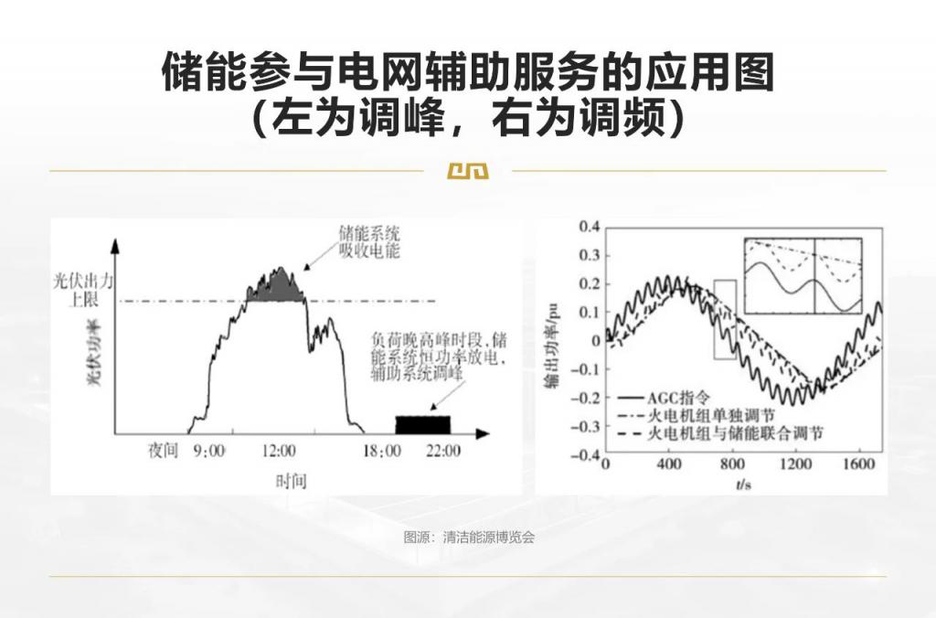 在電網(wǎng)側(cè),為電力系統(tǒng)提供調(diào)峰、調(diào)頻等輔助服務(wù)。例如調(diào)頻,頻率的變化會(huì)對(duì)發(fā)電及用電設(shè)備的安全高效運(yùn)行及壽命產(chǎn)生影響,儲(chǔ)能(特別是電化學(xué)儲(chǔ)能)調(diào)頻速度快,可靈活地在充放電狀態(tài)之間轉(zhuǎn)換。