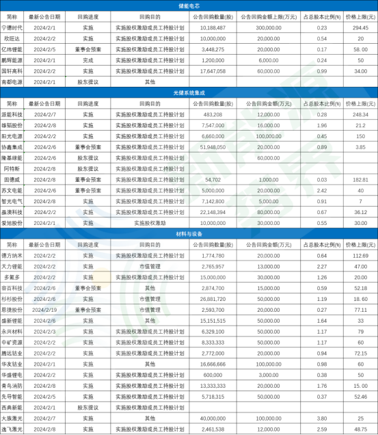 2024年儲(chǔ)能相關(guān)企業(yè)股份回購情況一覽