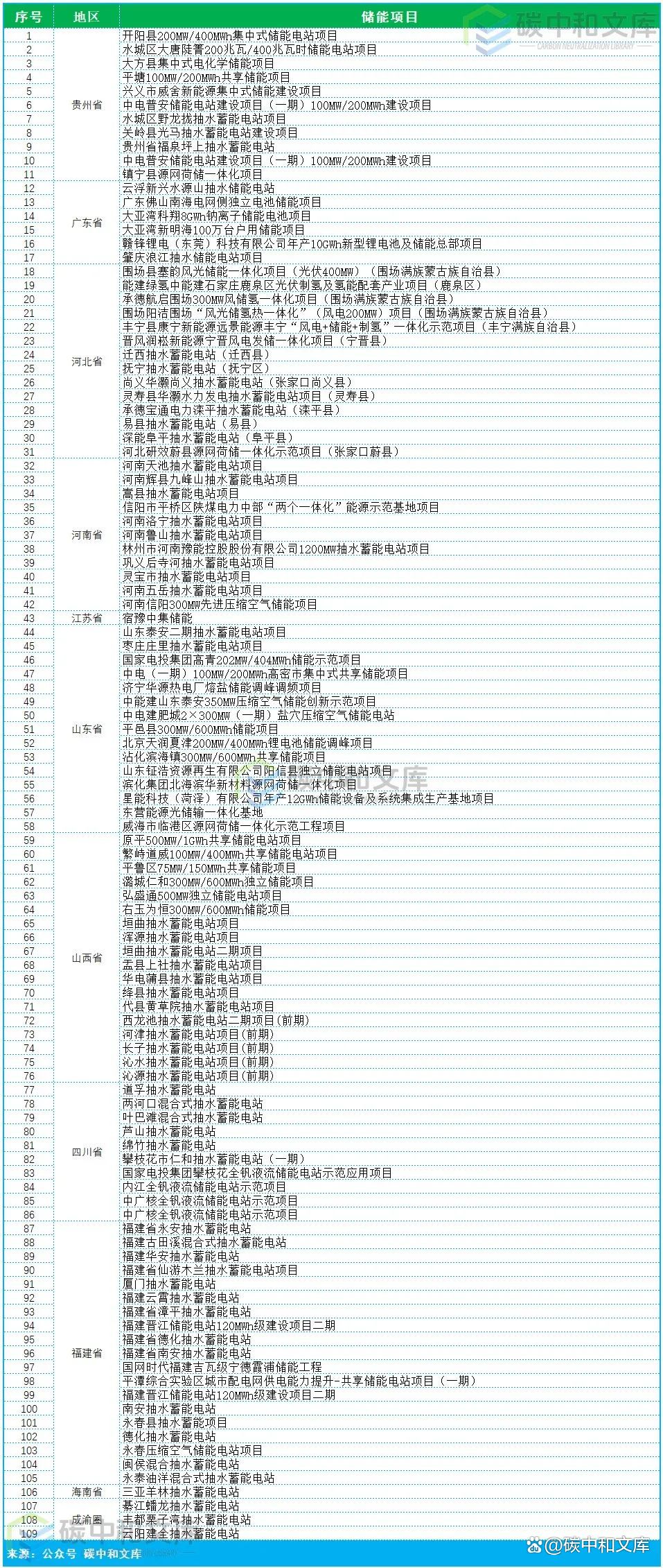 而已公布投資計(jì)劃的省份中有近11個(gè)地區(qū)將儲(chǔ)能項(xiàng)目納入了2024年重點(diǎn)/重大項(xiàng)目投資計(jì)劃清單中,合計(jì)109項(xiàng),詳細(xì)儲(chǔ)能項(xiàng)目信息見(jiàn)下圖。