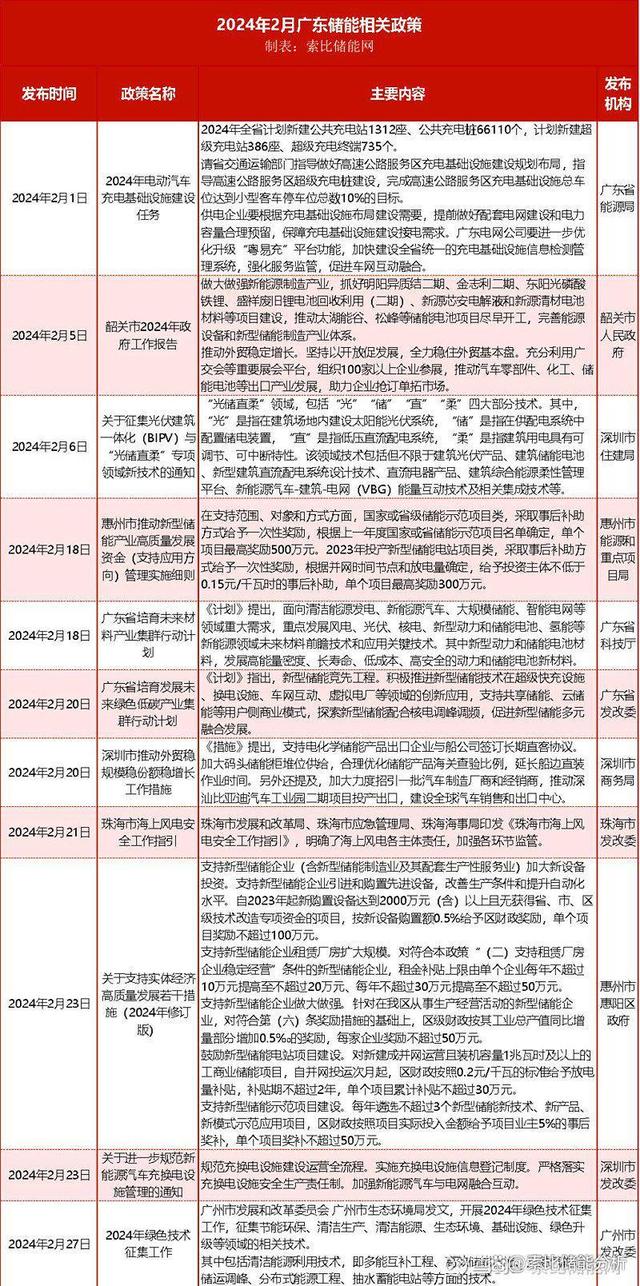 在廣東發(fā)布的11條儲能相關(guān)政策中,發(fā)布機構(gòu)涵蓋了廣東省能源局、廣東省科技廳、廣東省發(fā)改委、深圳市發(fā)改委、深圳市商務(wù)局、珠海市發(fā)改委等多家單位。