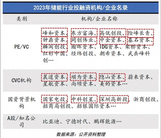 機(jī)構(gòu)入局者眾多,資金結(jié)構(gòu)豐富。過去一年,儲(chǔ)能行業(yè)的投資方不乏高瓴創(chuàng)投、同創(chuàng)偉業(yè)、中金資本(601995.SH)、IDG資本、春華資本等知名機(jī)構(gòu),也有蔚來資本、尚頎資本等產(chǎn)業(yè)基金,以及寧德時(shí)代、比亞迪(002594.SZ)等上市公司(具體見圖1)。
