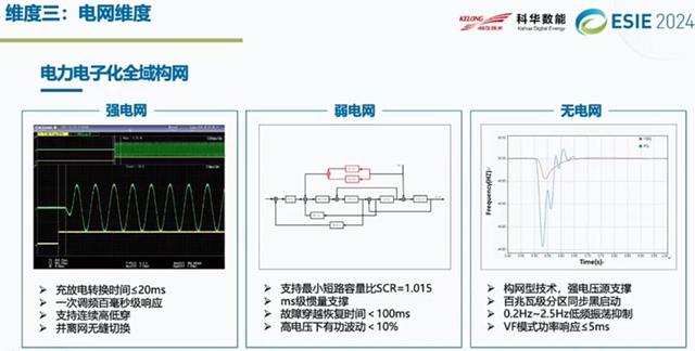 第三個創(chuàng)新維度就是電網(wǎng)側。現(xiàn)在的電力電子化,不管是光伏也好,儲能也好,對電網(wǎng)提出很大挑戰(zhàn)。當前的一個構網(wǎng),我們提出在強電網(wǎng)、弱電網(wǎng)甚至無電網(wǎng)的情況下面,新型儲能如何適應電網(wǎng)的各種需求。