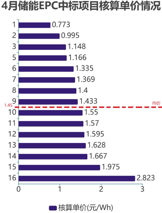 ※ 4月儲(chǔ)能EPC中標(biāo)核算單價(jià)情況 來(lái)源:星球儲(chǔ)能所