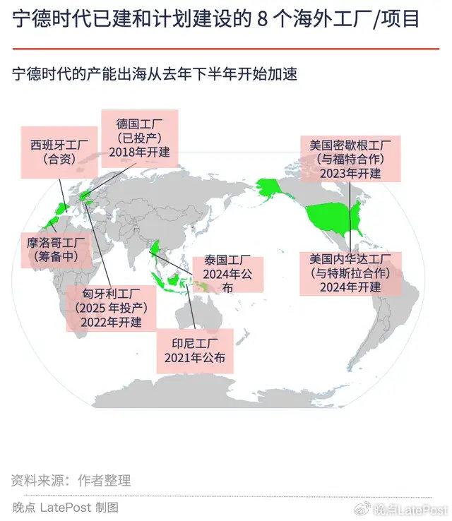 此前,寧德時(shí)代已披露了 6 個(gè)海外工廠計(jì)劃,分別是:德國圖林根工廠、匈牙利工廠、美國密歇根工廠(與福特合作)、美國內(nèi)華達(dá)工廠(與特斯拉合作)、印尼工廠和泰國工廠。