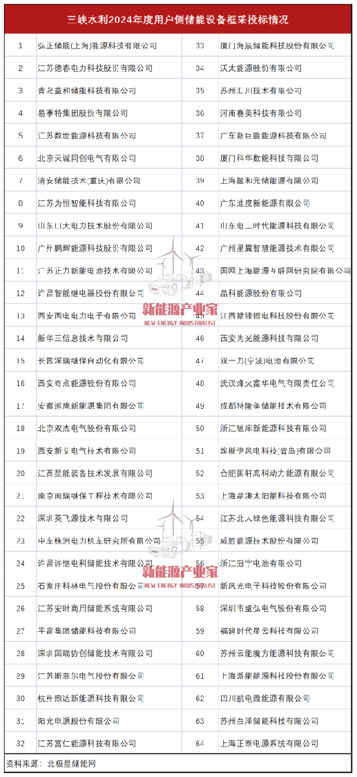 不久前,三峽水利2024年度用戶側儲能設備框架協(xié)議采購,總共有64家企業(yè)投標。