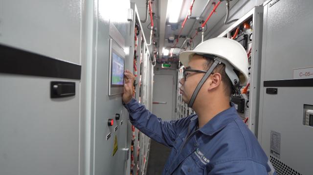 金寨申鑫儲(chǔ)能電站工作人員在調(diào)試儲(chǔ)能設(shè)備。(采訪單位供圖)