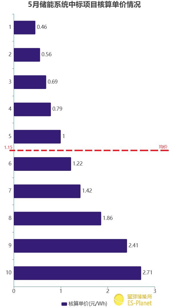 ※ 5月儲能EPC中標單價情況 來源:星球儲能所
