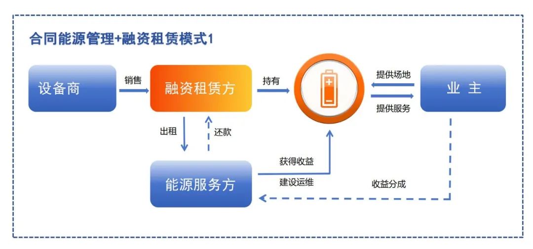 在合同能源管理模式基礎(chǔ)上,引入融資租賃方,向能源服務(wù)方和業(yè)主提供儲(chǔ)能資產(chǎn)出租,以降低能源服務(wù)方和業(yè)主的現(xiàn)金流壓力,同時(shí),能夠發(fā)揮能源服務(wù)方在系統(tǒng)運(yùn)營(yíng)方面的專(zhuān)業(yè)優(yōu)勢(shì),有利于推動(dòng)儲(chǔ)能項(xiàng)目的落地。此模式涉及參與方較多,合同簽訂、財(cái)務(wù)開(kāi)票等流程較為復(fù)雜,且其中子模式演變靈活多樣,未來(lái)隨著資產(chǎn)方對(duì)儲(chǔ)能盈利的信心提升,這種模式有望得到進(jìn)一步推廣。