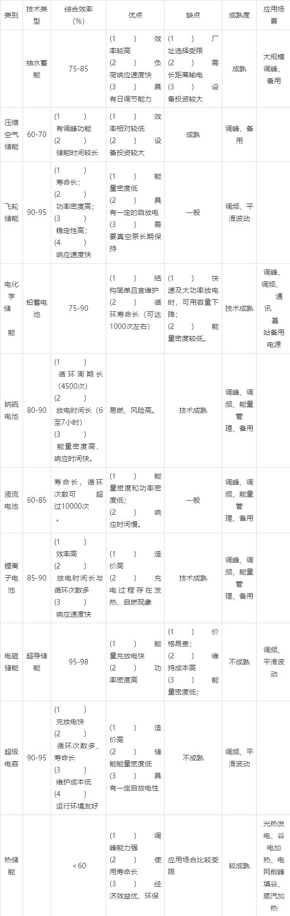 如表1所示,為不同新型儲(chǔ)能技術(shù)的特點(diǎn)分析。