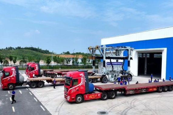 6月14日,位于湖北省宜昌市夷陵區(qū)龍泉鎮(zhèn)的宜昌楚能新能源創(chuàng)新科技有限公司集裝箱車間門口,6輛大貨車一字排開(kāi),裝載著6個(gè)楚能20尺5MWh電池集裝箱整裝待發(fā),即將啟航新疆。