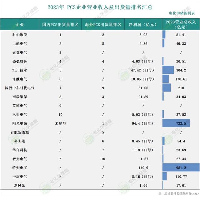 2023年度,海外市場中,儲能PCS出貨量排名前十位的中國企業(yè),依次為:陽光電源、科華數(shù)能、南瑞繼保、盛弘股份、首航新能源、科士達、華自科技、上能電氣、株洲中車時代電氣和智光儲能。