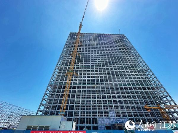 中國天楹如東重力儲(chǔ)能示范項(xiàng)目形似“大魔方”。人民網(wǎng) 周夢嬌攝